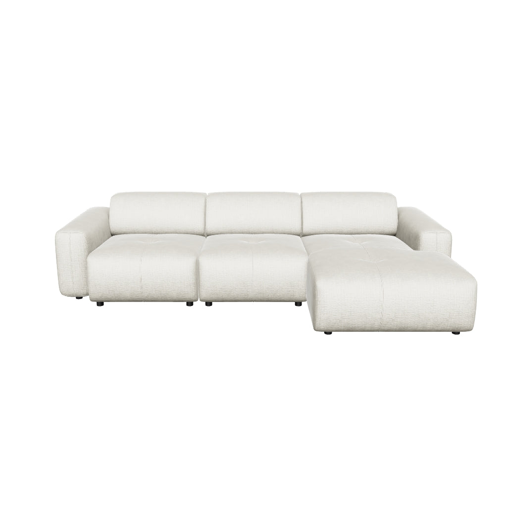 Der hochwertige Bouclé-Stoff sorgt für eine angenehm weiche, strukturierte Oberfläche und unterstreicht den modernen Charakter des Sofas. Dank der modularen Bauweise lässt sich Calm flexibel an unterschiedliche Raumkonzepte anpassen und eignet sich ideal für moderne, funktionale Wohnräume.