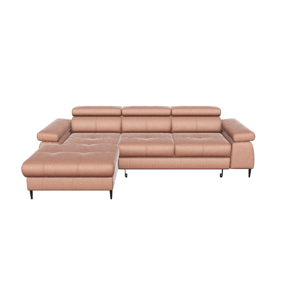 Das Ecksofa Córdoba I kombiniert modernes Design mit hohem Komfort und praktischer Funktionalität. Die Wellenfederung mit PU-Schaum (30 kg/m³) sorgt für eine angenehme, stützende Sitzfläche, während verstellbare Kopfstützen individuelle Entspannung ermöglichen. Der Delfin-Mechanismus verwandelt das Sofa schnell in eine komfortable Schlaffläche von 213 × 126 cm, und der integrierte Bettkasten bietet zusätzlichen Stauraum. Elegante Metallbeine setzen stilvolle Akzente.