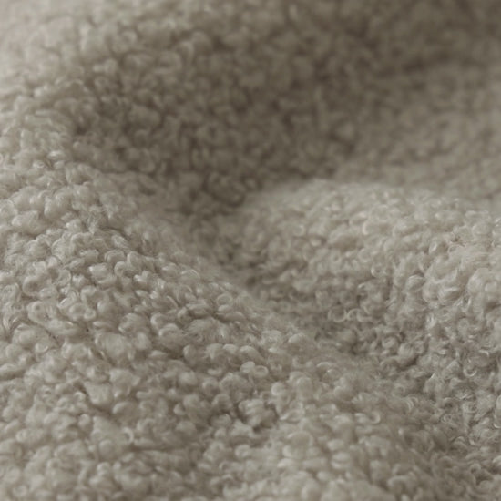 Der Bezug besteht aus hochwertigem Bouclé, einem weichen, strapazerfähigen und pflegeleichten Stoff mit charakteristischer Schlingenstruktur. Er ist angenehm in der Haptik und gut geeignet für den täglichen Gebrauch.