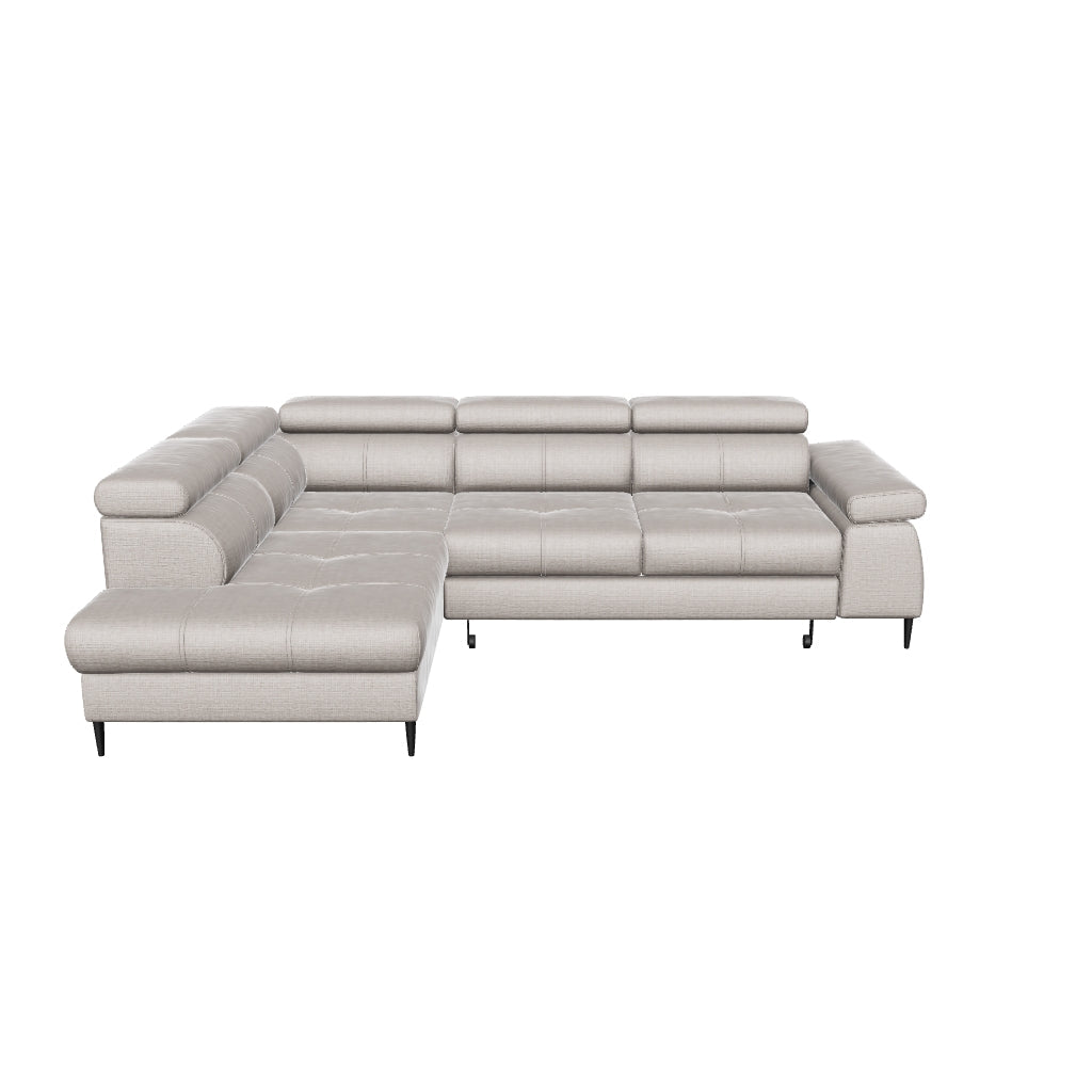 Das Ecksofa Cordoba II vereint Eleganz, Funktionalität und zeitloses Design in einem modernen Möbelstück. Die klaren Linien und verstellbaren Kopfstützen mit schwarzem Akzent verleihen dem Sofa ein stilvolles, hochwertiges Erscheinungsbild. Stabile Stahlfüße sorgen für sicheren Stand und moderne Optik, während die Kombination aus hochwertigem Schaumstoff und Wellenunterfederung optimalen Sitz- und Liegekomfort bietet.