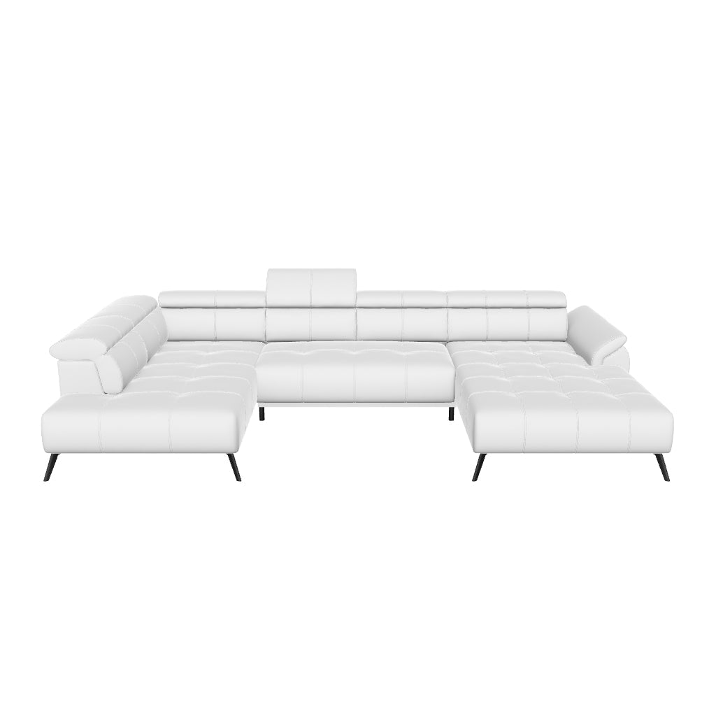 Das Ecksofa Genova III vereint elegante Extravaganz mit hohem Komfort. Sanft gerundete Formen, dekorative Doppelnadelsteppungen und hohe Möbelfüße verleihen dem Sofa Luxus und Stil. Praktische Funktionen wie die elektrische Sitzverlängerung (bis zu 25 cm), verstellbare Kopfstützen und ein integrierter USB-Anschluss machen es ideal für den modernen Alltag.