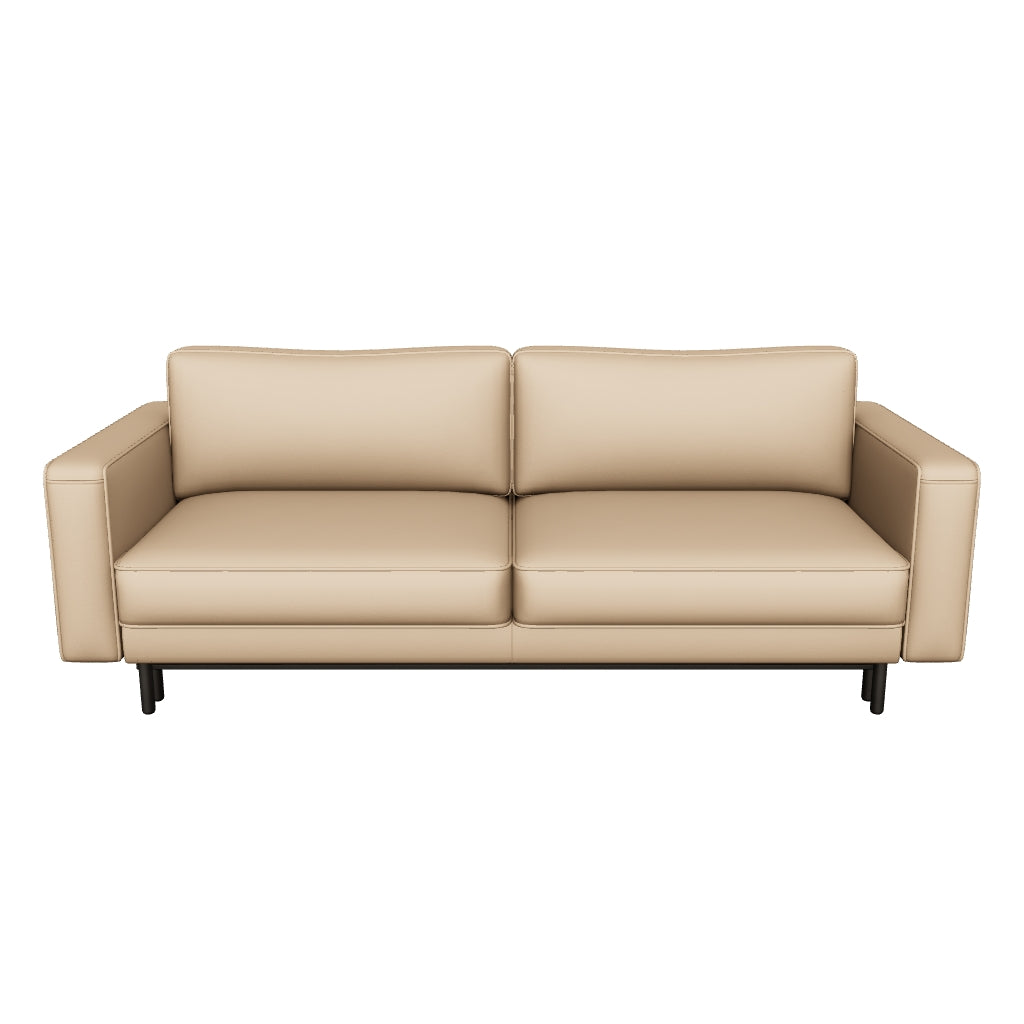 Das Sofa California vereint minimalistisches Design mit durchdachter Funktionalität. Die klare Formsprache mit rechteckigen Armlehnen und schlanken schwarzen Metallfüßen verleiht dem Sofa zeitlose Eleganz und eine leichte, schwebende Optik. Die harmonisch proportionierten Sitz- und Rückenkissen bieten ein ausgewogenes Verhältnis zwischen Komfort und Formstabilität.